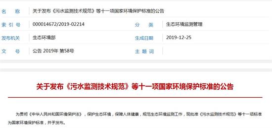 生态环境部一口气发布11个环境保护标准,附标准下载