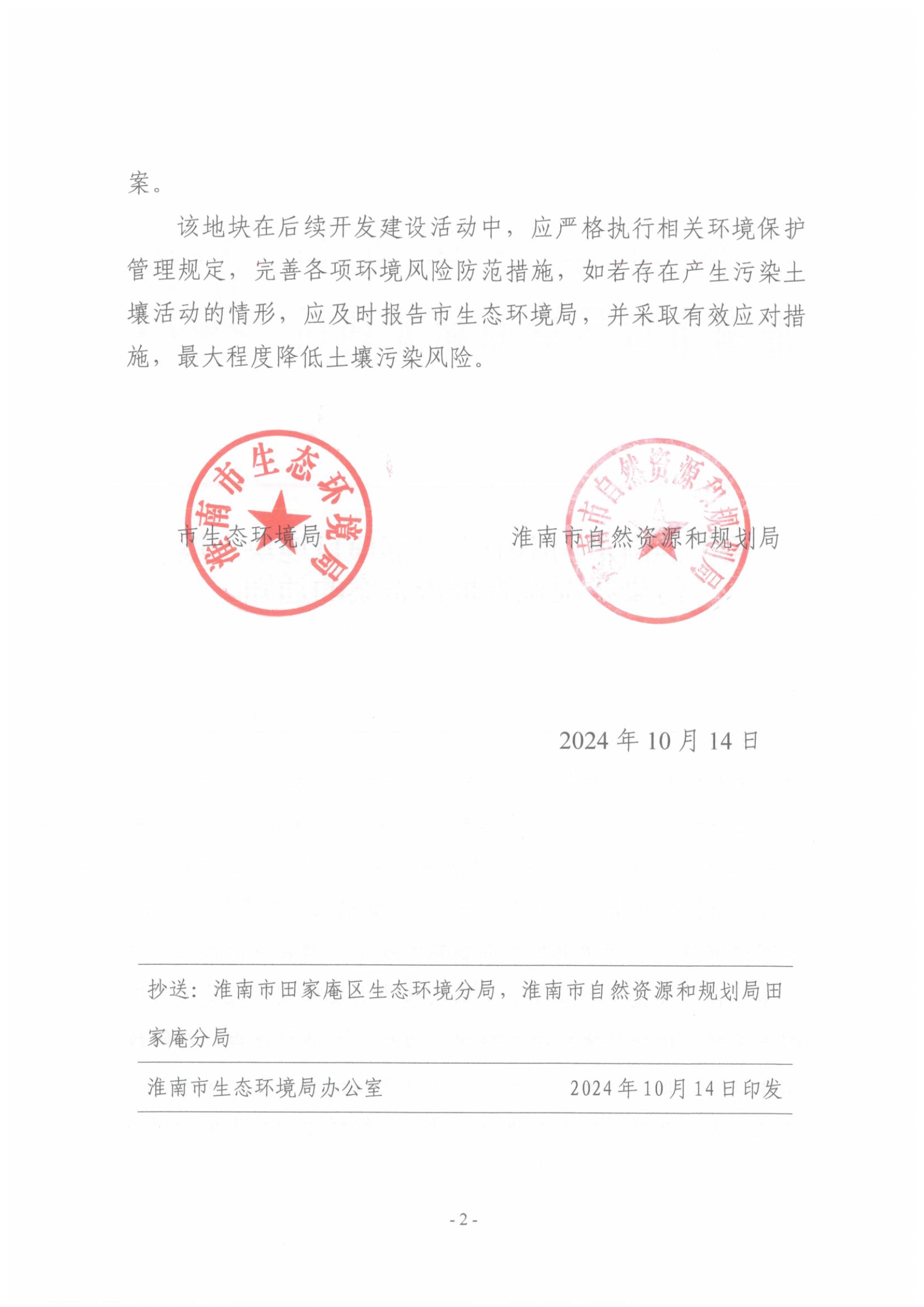 关于淮南市洞山中学二部项目地块土壤污染状况调查报告备案的函