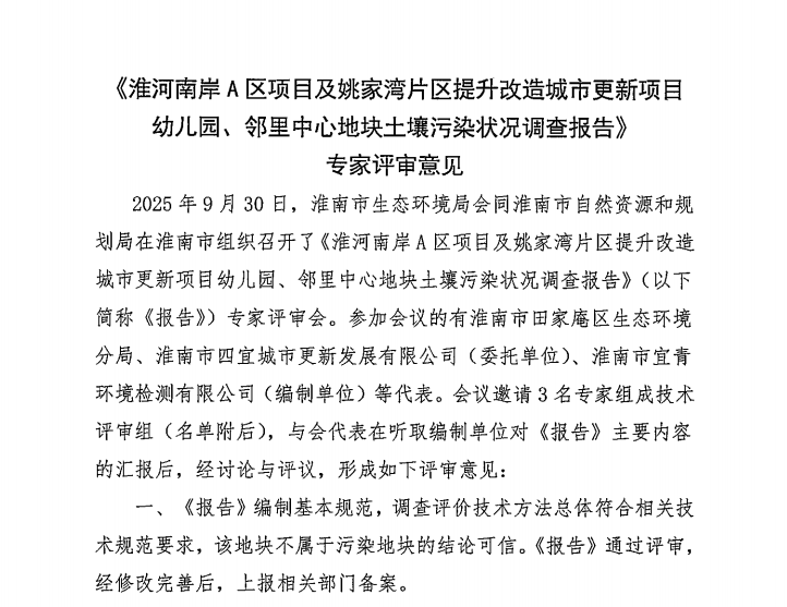 淮河南岸A区项目及姚家湾片区提升改造城市更新项目幼儿园、邻里中心地块土壤污染状况调查报告公示